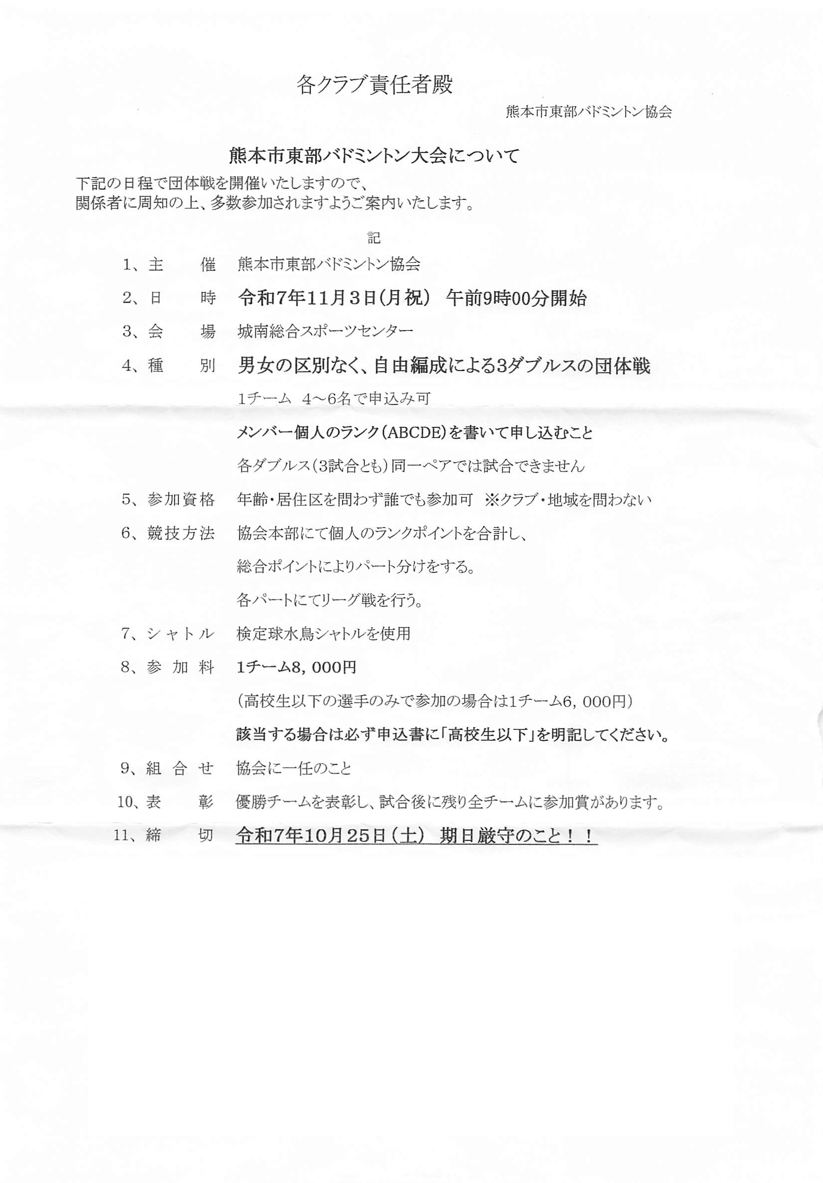 4、 種 別: 男女の区別なく、自由編成による 3ダブルスの団体戦