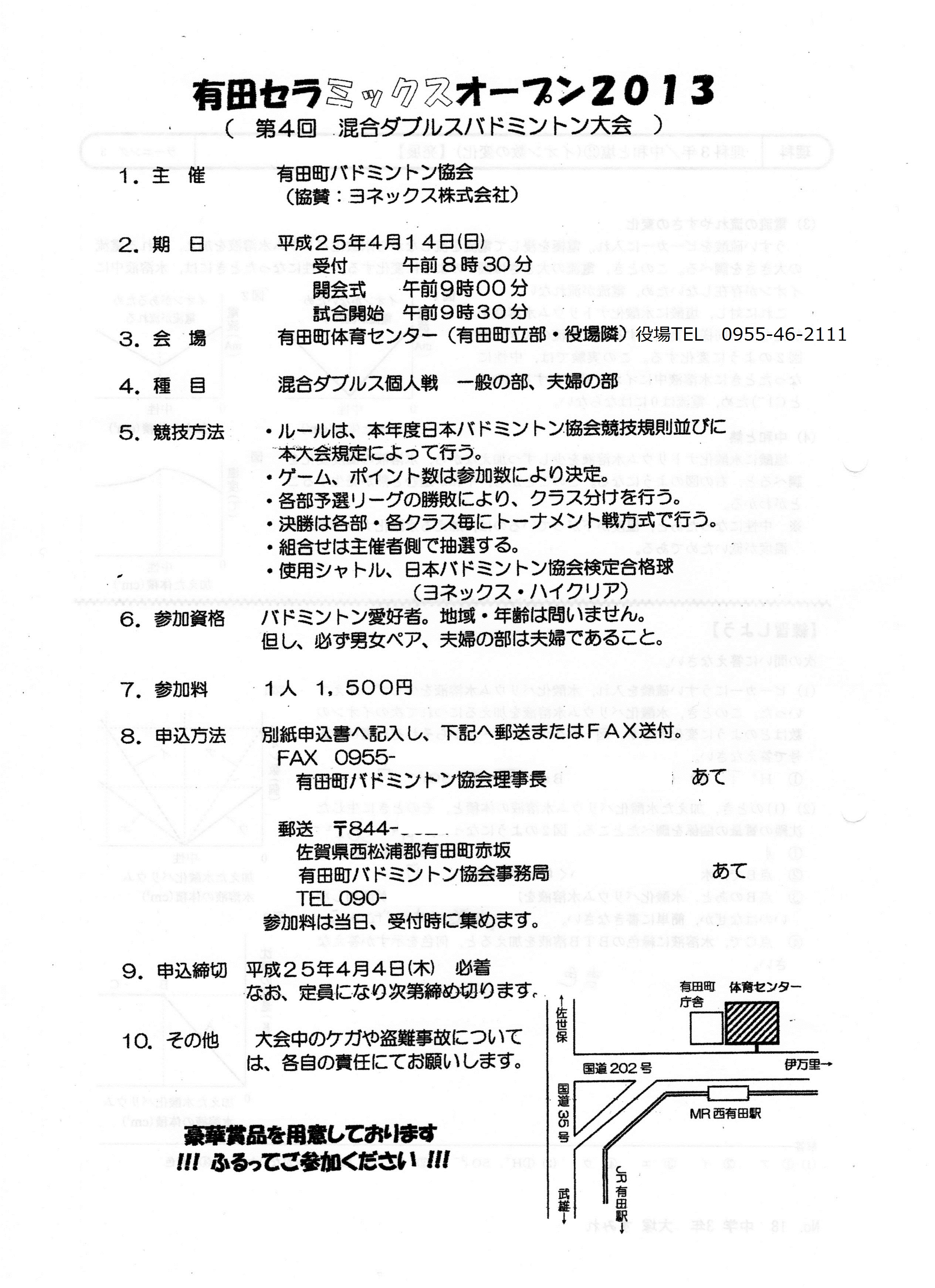 会場:有田町体育センター(有田町役場隣 役場0955-46-2111