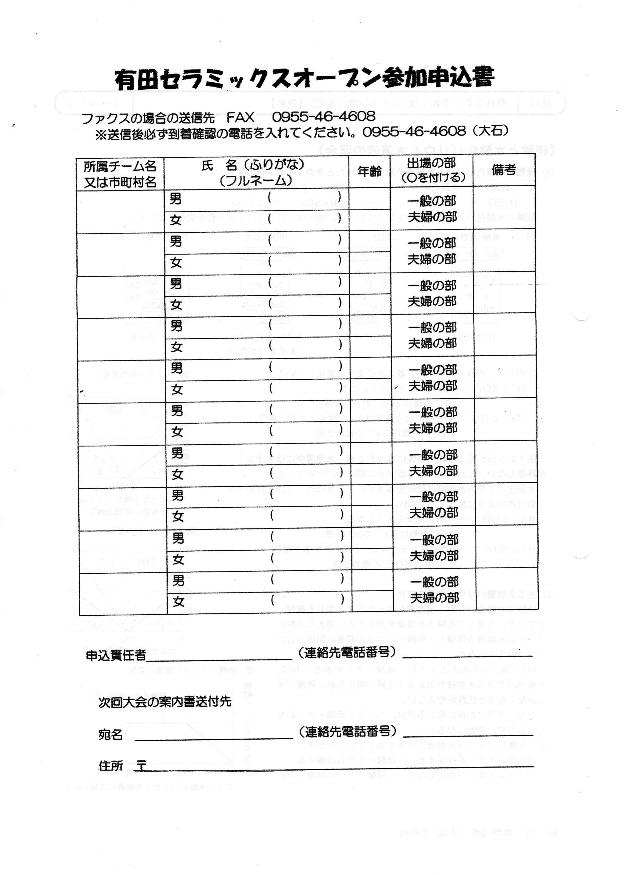 参加資格:バドミントン愛好者。地域、年齢は問わない。必ず男女ペア、夫婦の部は夫婦であること。