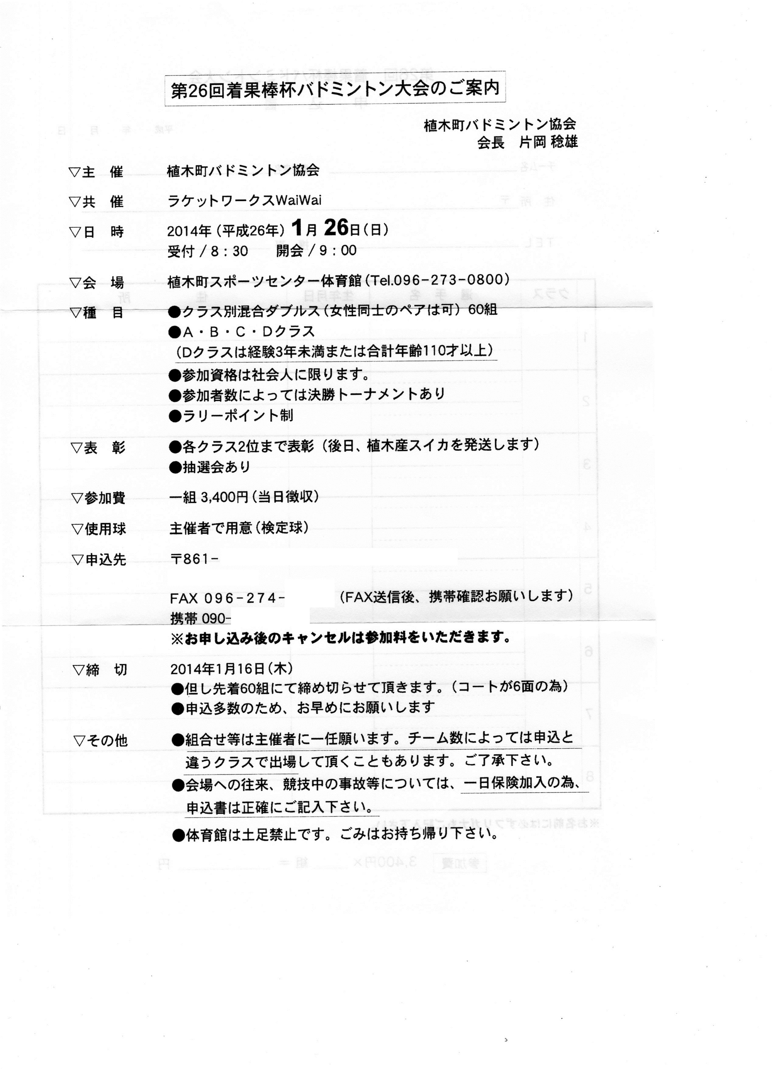 締め切り:平成26年1月16日(木)先着60組で締め切り
