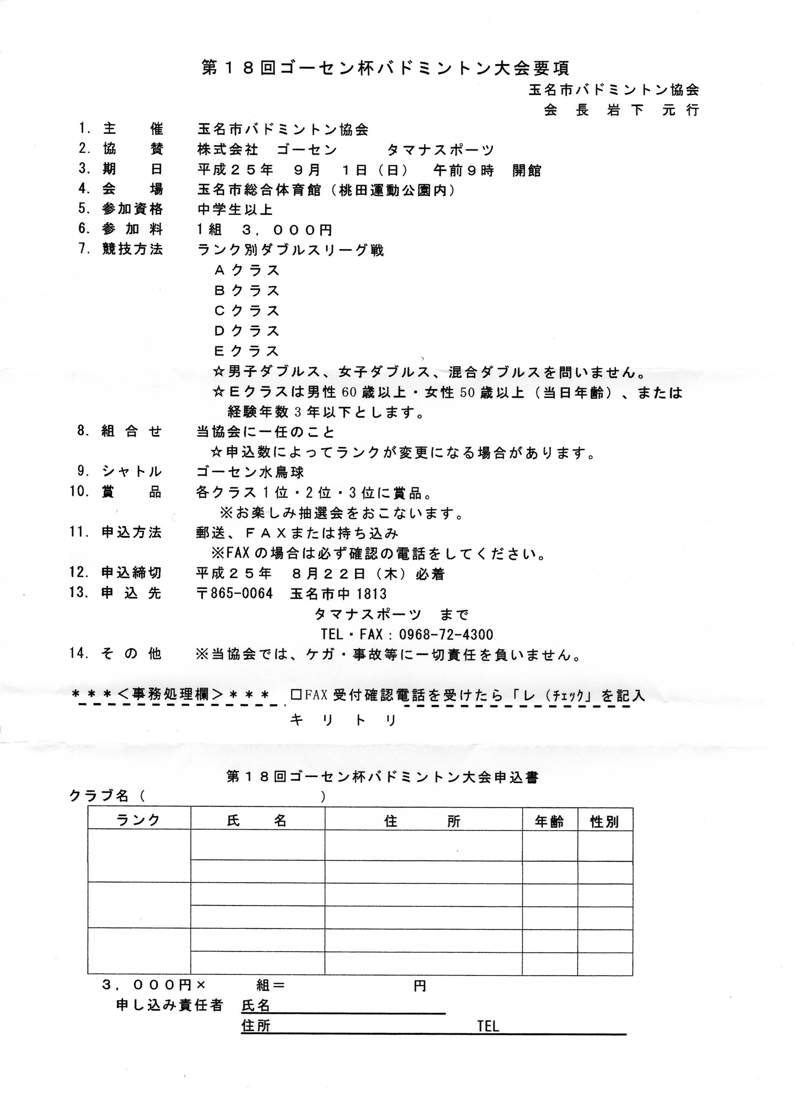 申し込み先:タマナスポーツ fax番号は、添付している大会要項をご覧ください。(PCのみ)