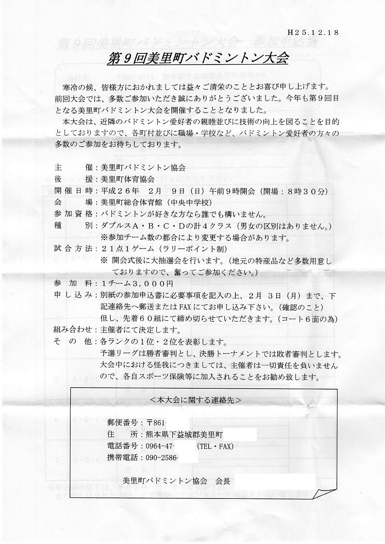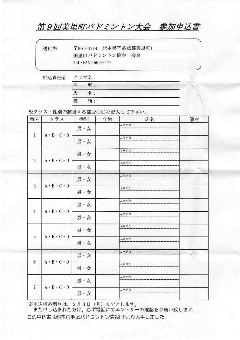 その他:大会中の怪我については責任負いません。各自スポーツ保険等に加入をお勧めします。