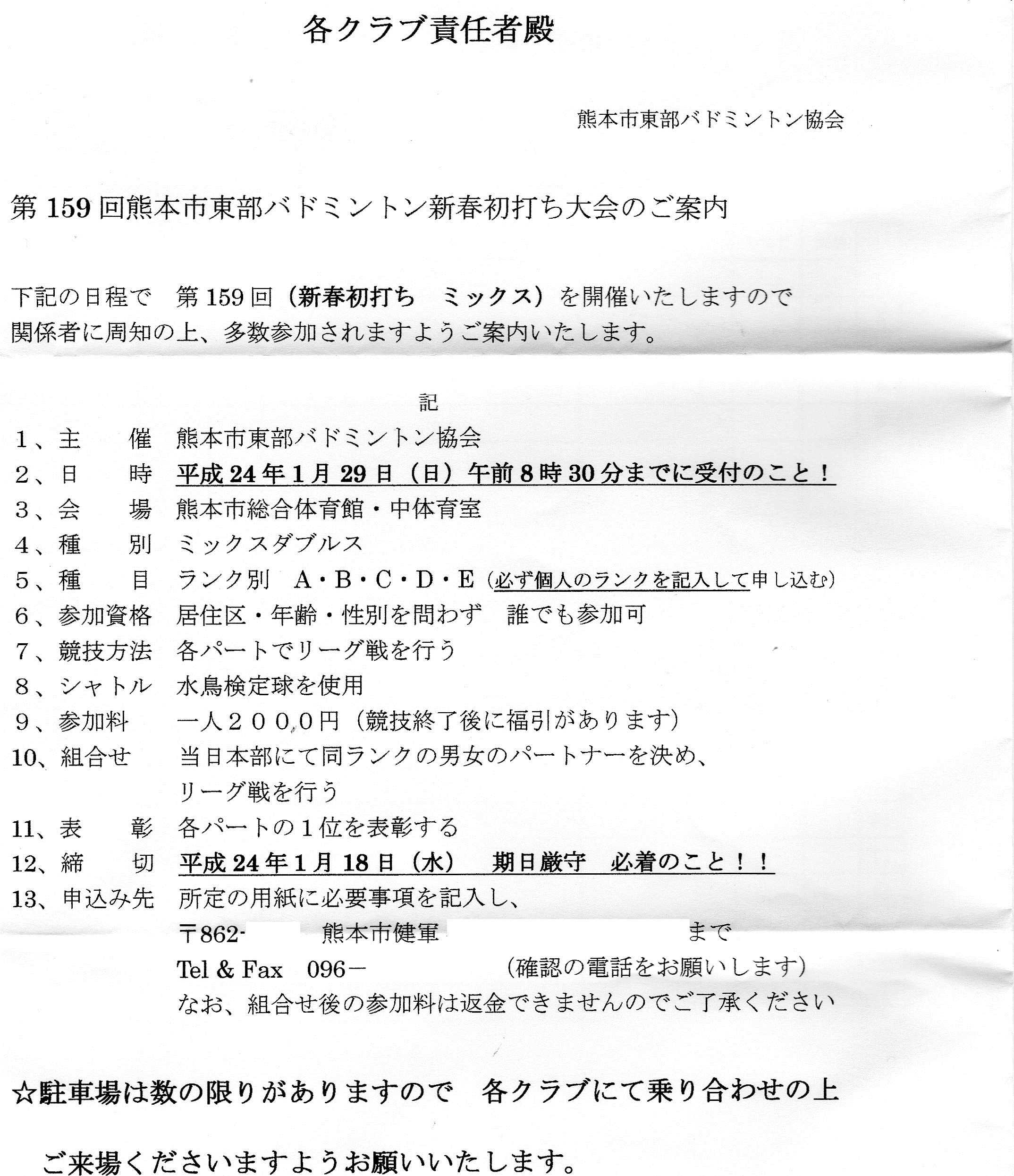 参加料:一人2000円(福引あり)