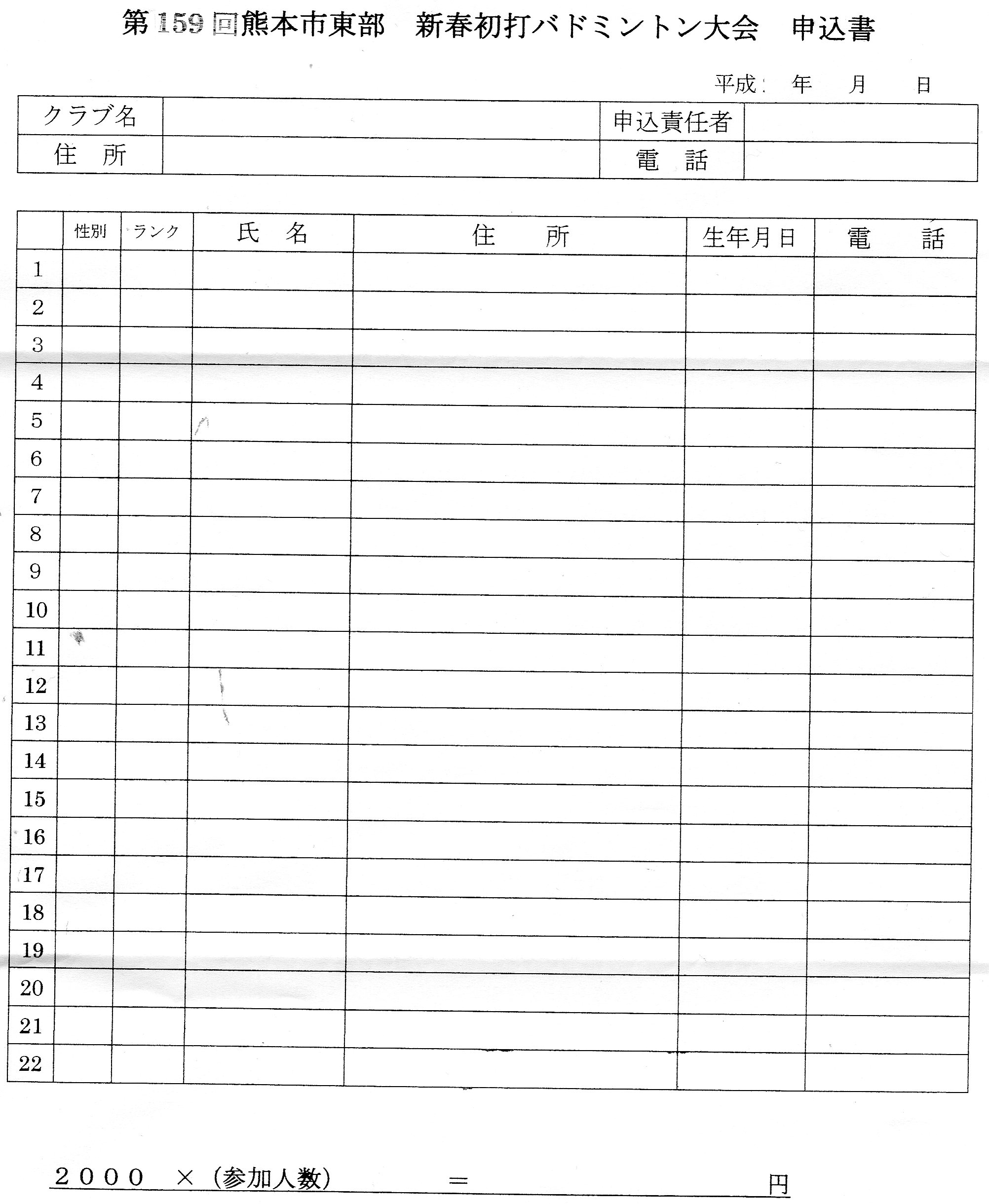 個人のランクをを記入して申し込み。