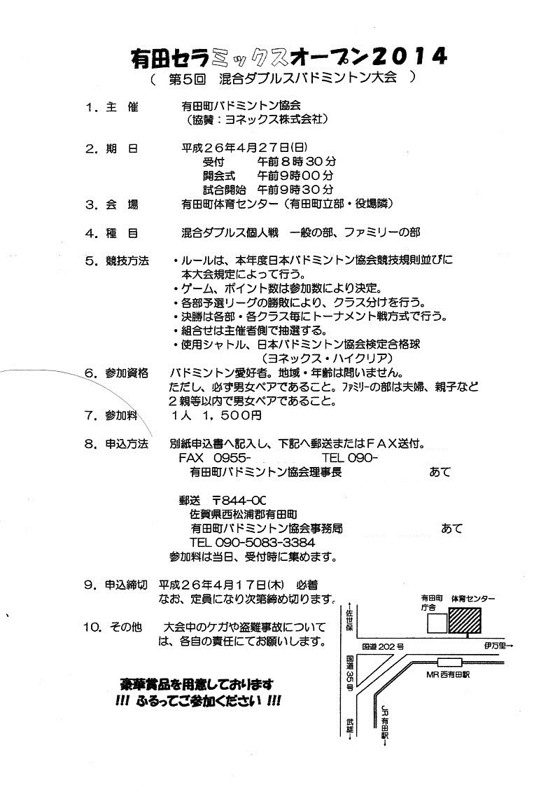 会場:有田町体育センター(有田町役場隣 役場0955-46-2111