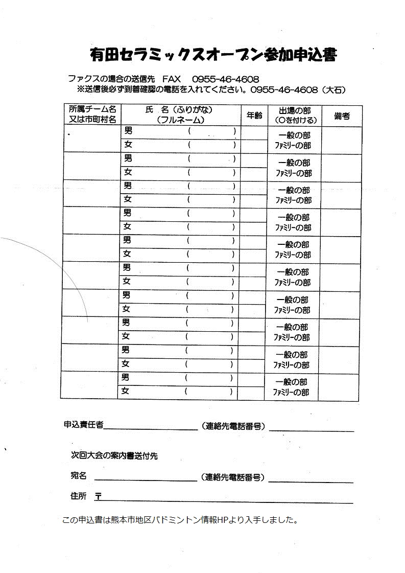 参加資格:バドミントン愛好者。地域、年齢は問わない。必ず男女ペア。