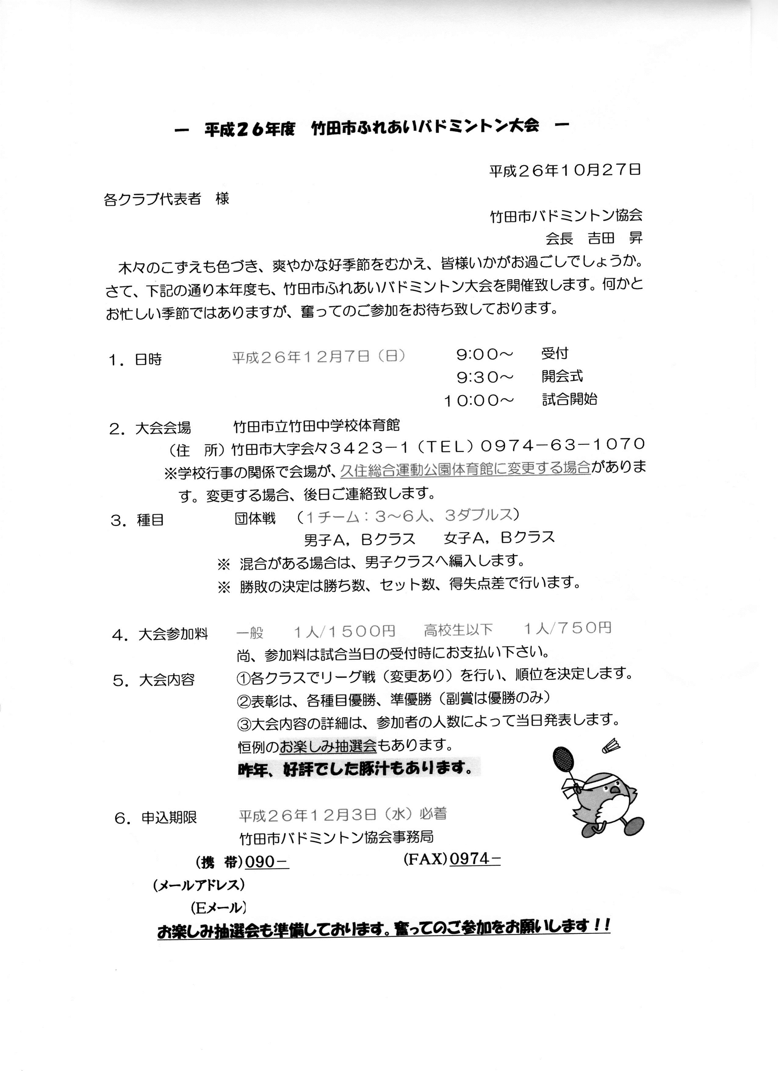 日時:平成26年12月7日(日) 9:00受付 9:30開会式