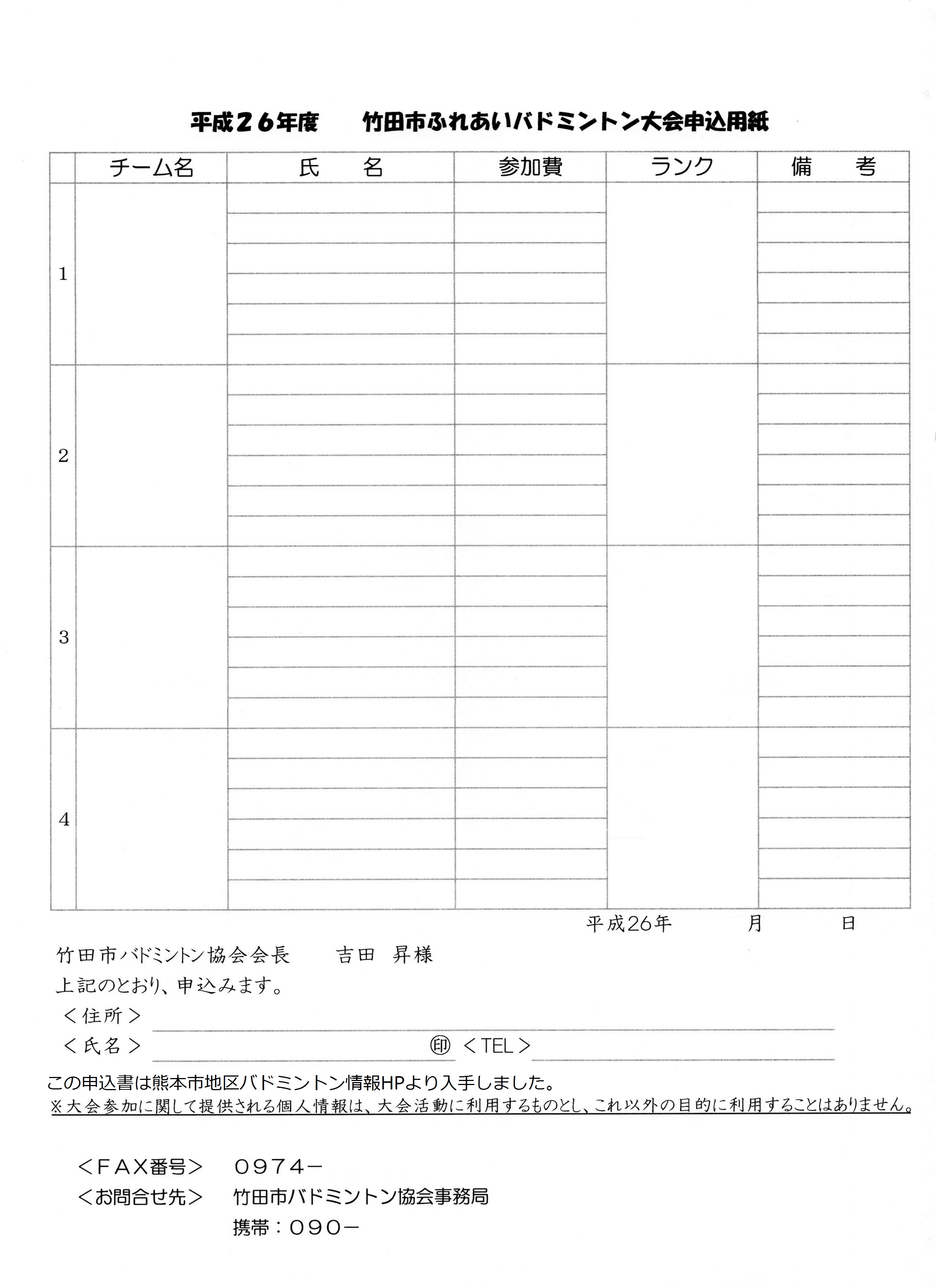 会場:竹田市立竹田中学校体育館(学校行事により久住総合運動公園体育館に変更する可能性あり)