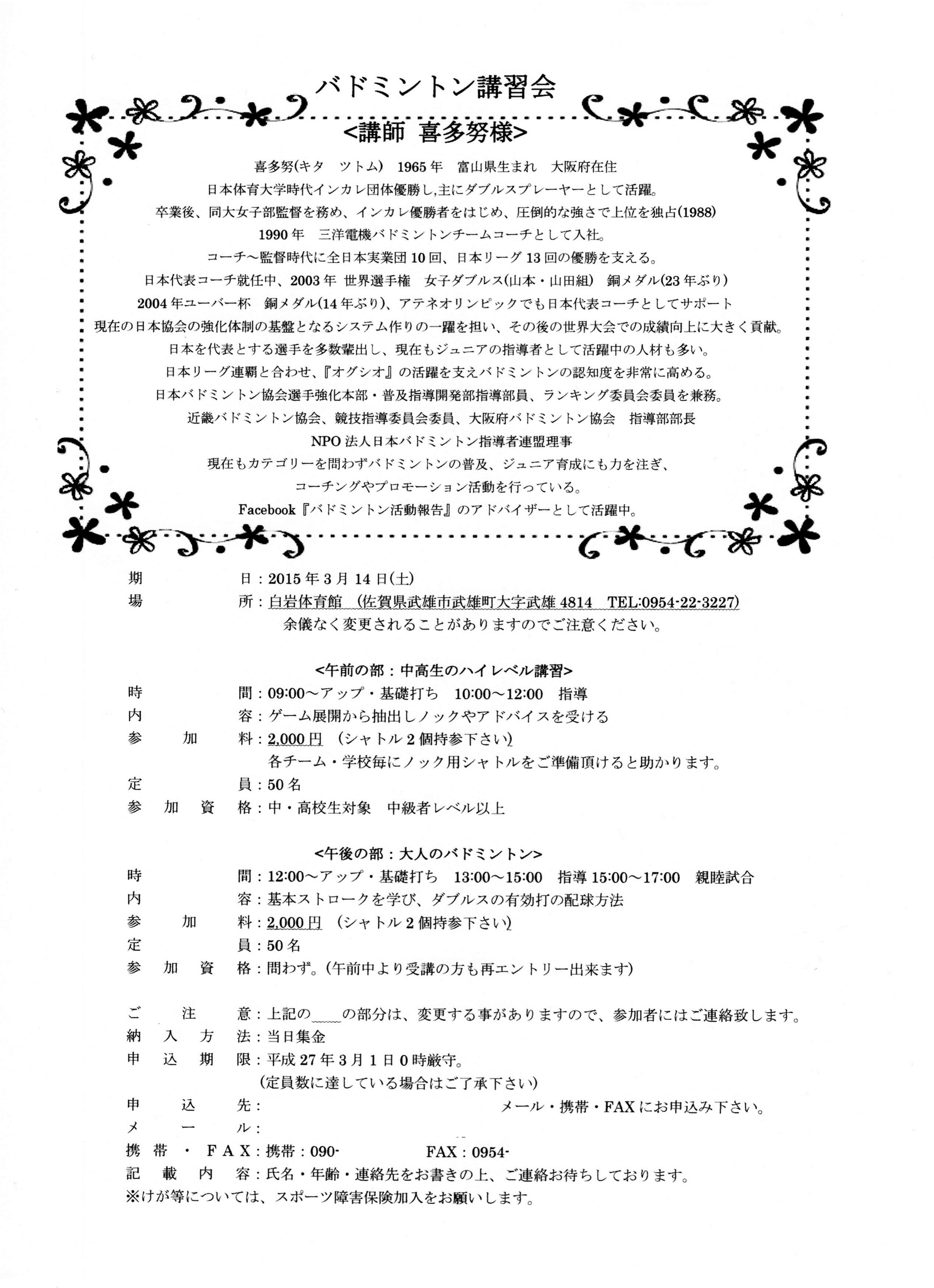 申込締め切り:平成27年3月1日(日)午前0時 定員にになり次第締め切り)