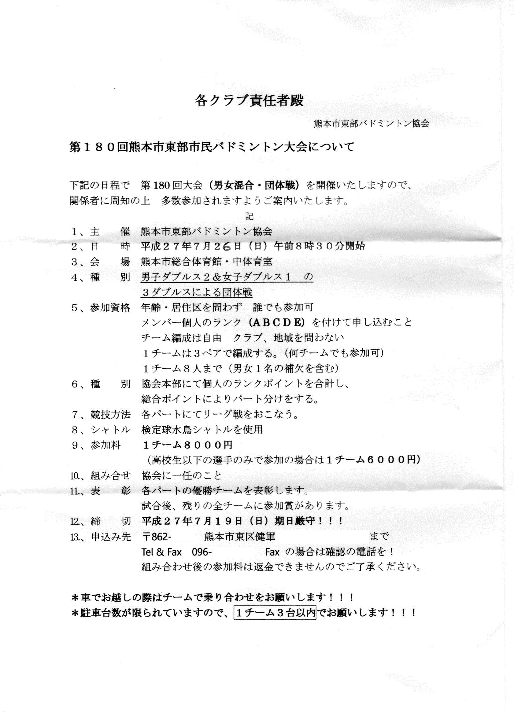 種目:男子ダブルス×2、女子ダブルス×1の3ダブルス団体戦 (女子は男子として参加可)