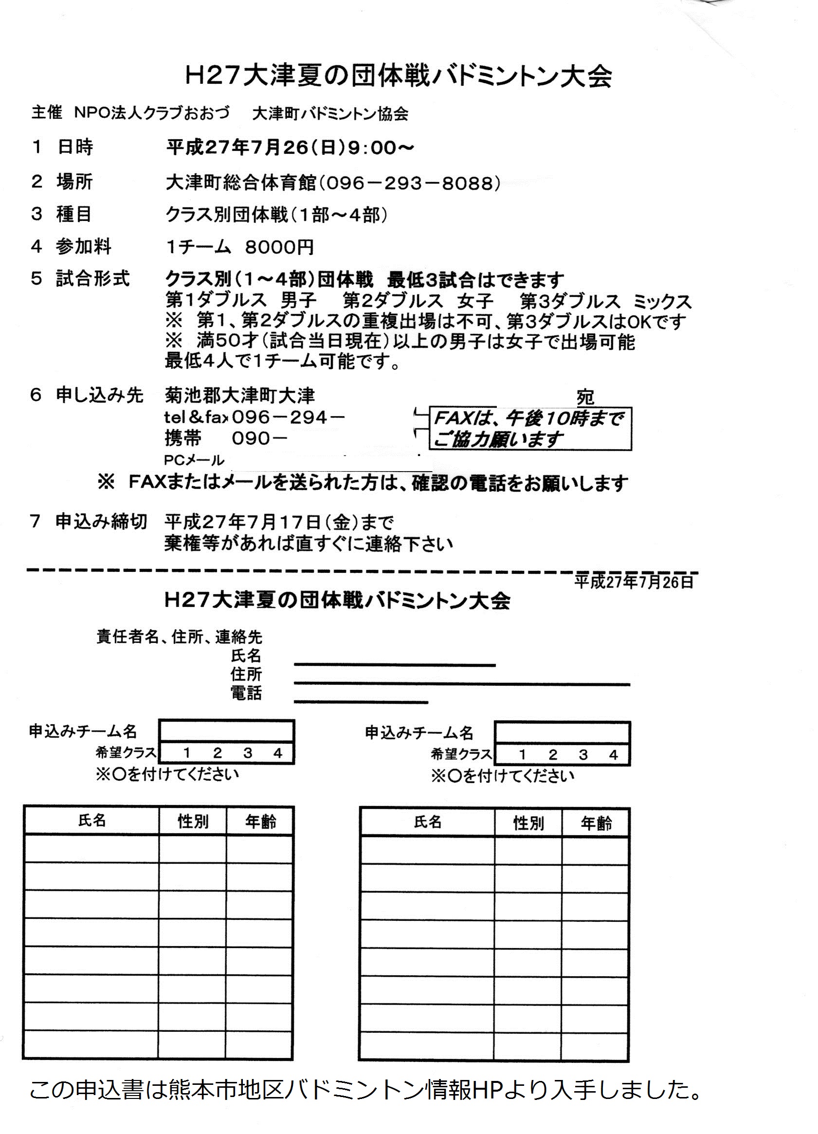 参加資格:チーム編成は自由(誰でも参加可) チームのランクを付けて申し込む。 1チーム4~6人(ミックスは男子または女子ダブルスと重複出場可)