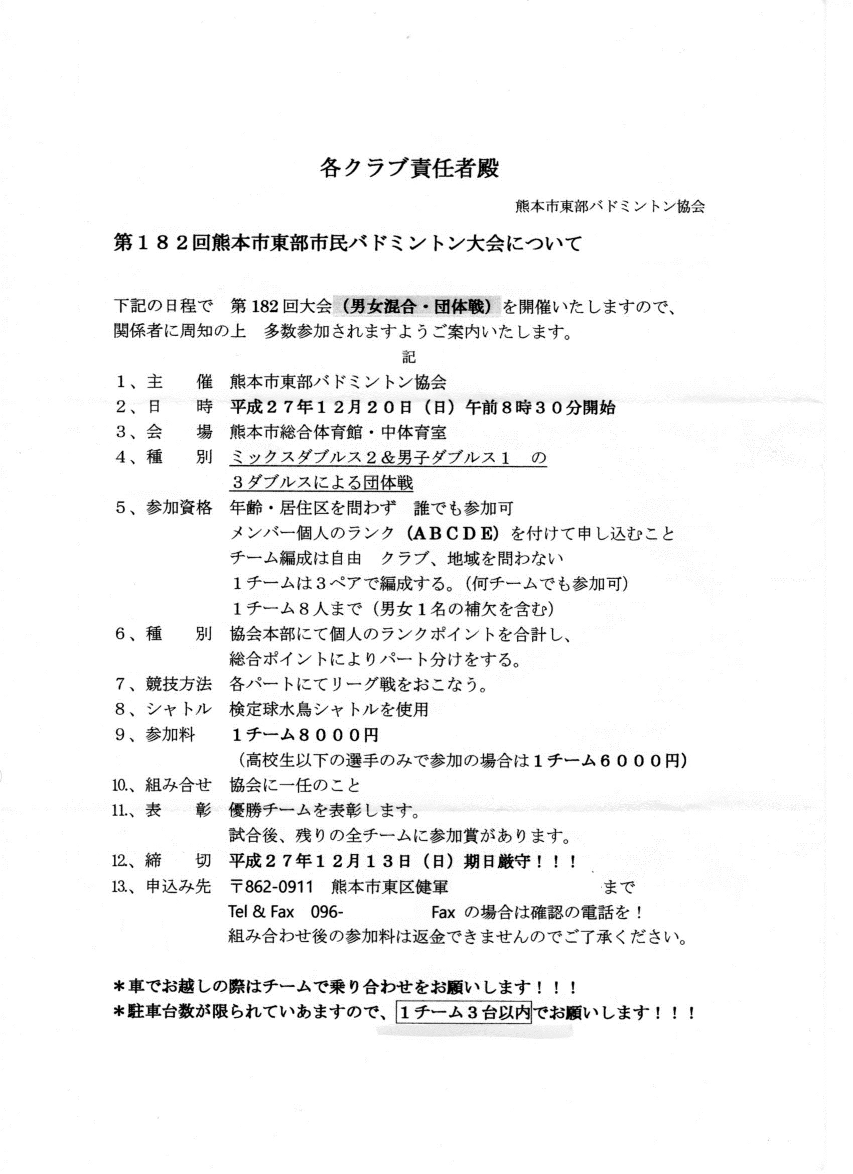 種目:男子ダブルス×1、ミックスダブルス×2の3ダブルス団体戦 (女子は男子として参加可)