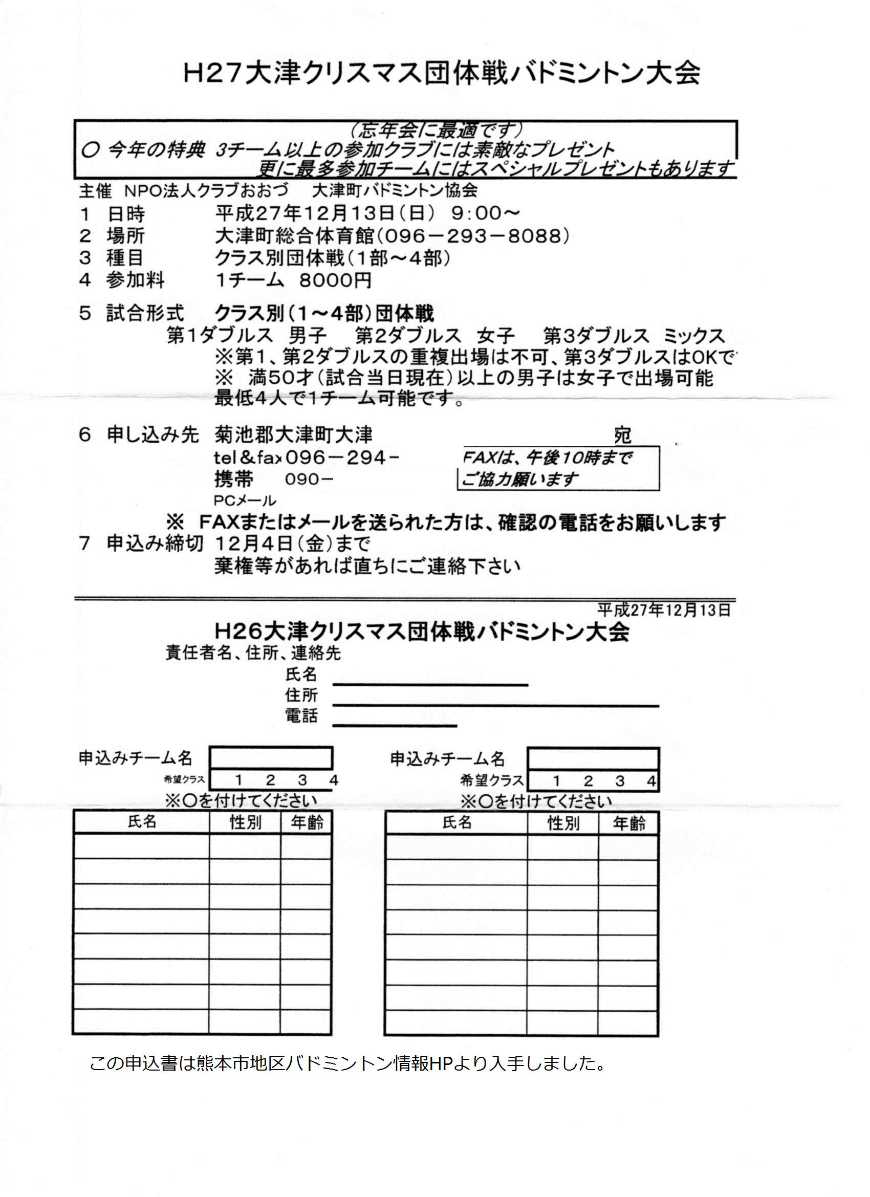 参加資格:チーム編成は自由(誰でも参加可) チームのランクを付けて申し込む。 1チーム4~6人(ミックスは男子または女子ダブルスと重複出場可)