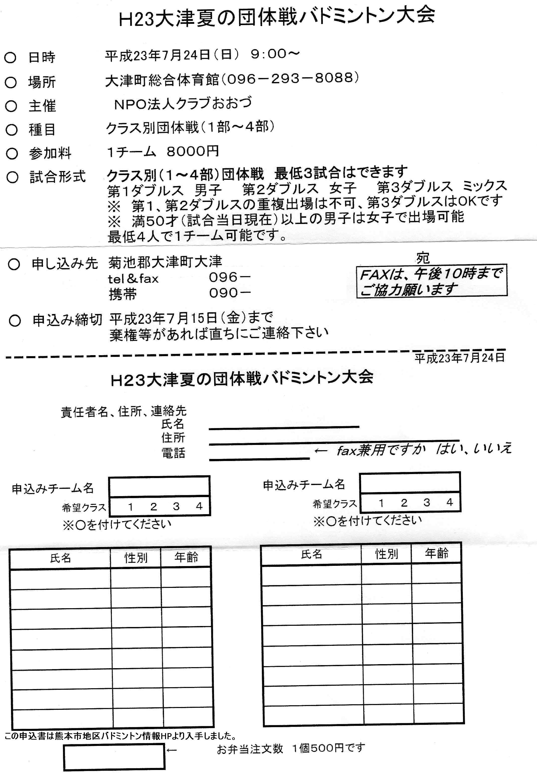 参加資格:チーム編成は自由(誰でも参加可) チームのランクを付けて申し込む。 1チーム4~6人(ミックスは男子または女子ダブルスと重複出場可)