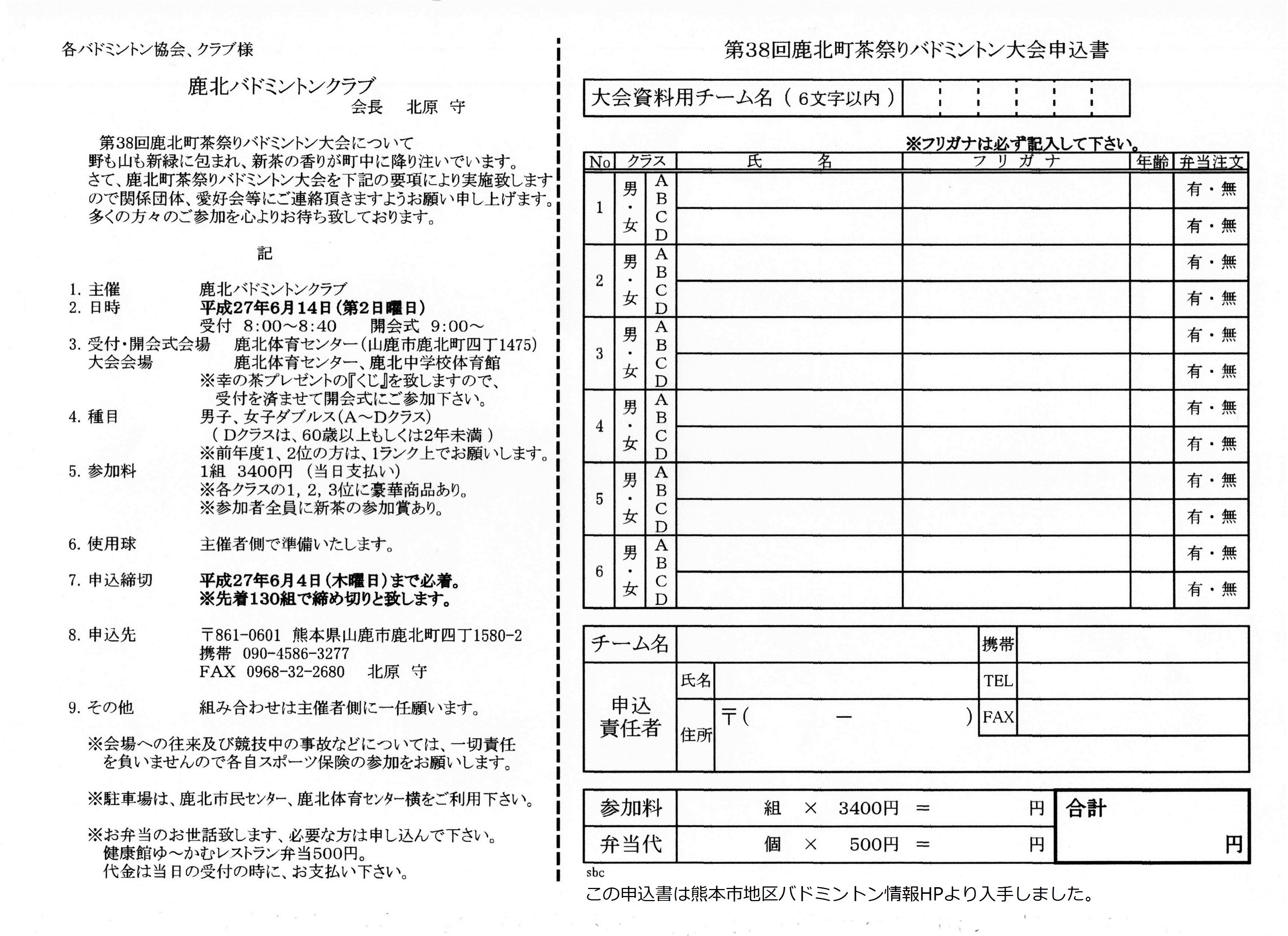 主催 ; 鹿北バドミントンクラブ
