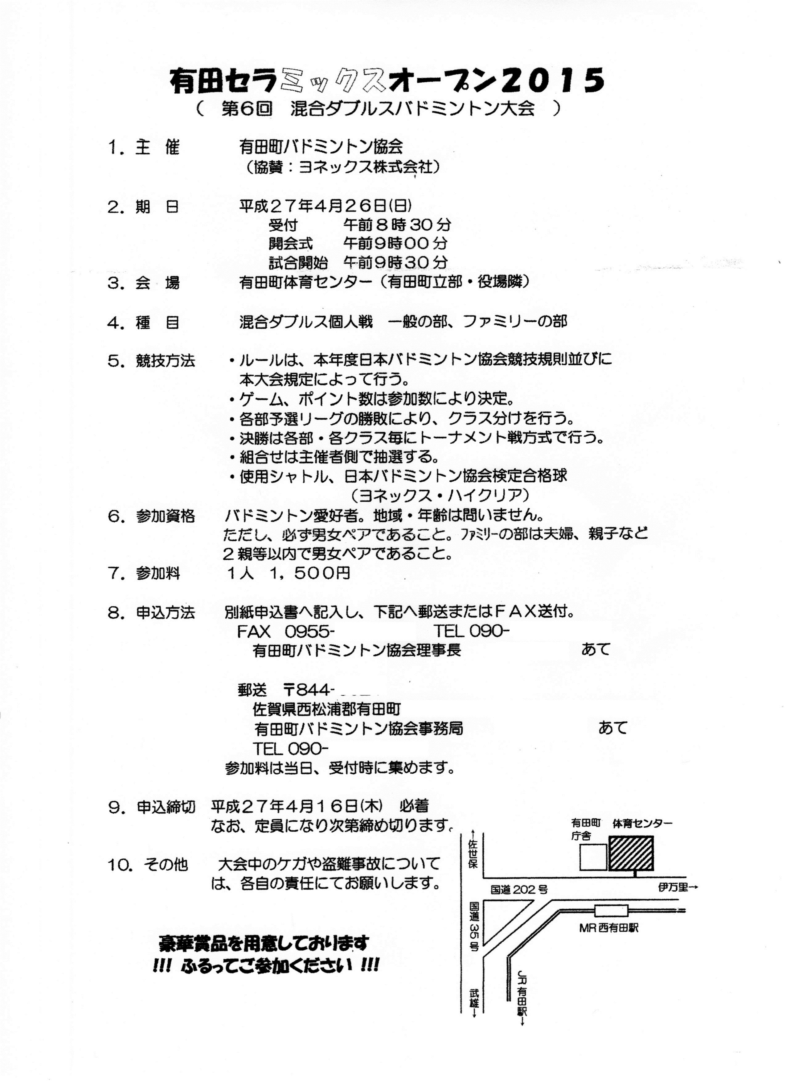 会場:有田町体育センター(有田町役場隣 役場0955-46-2111