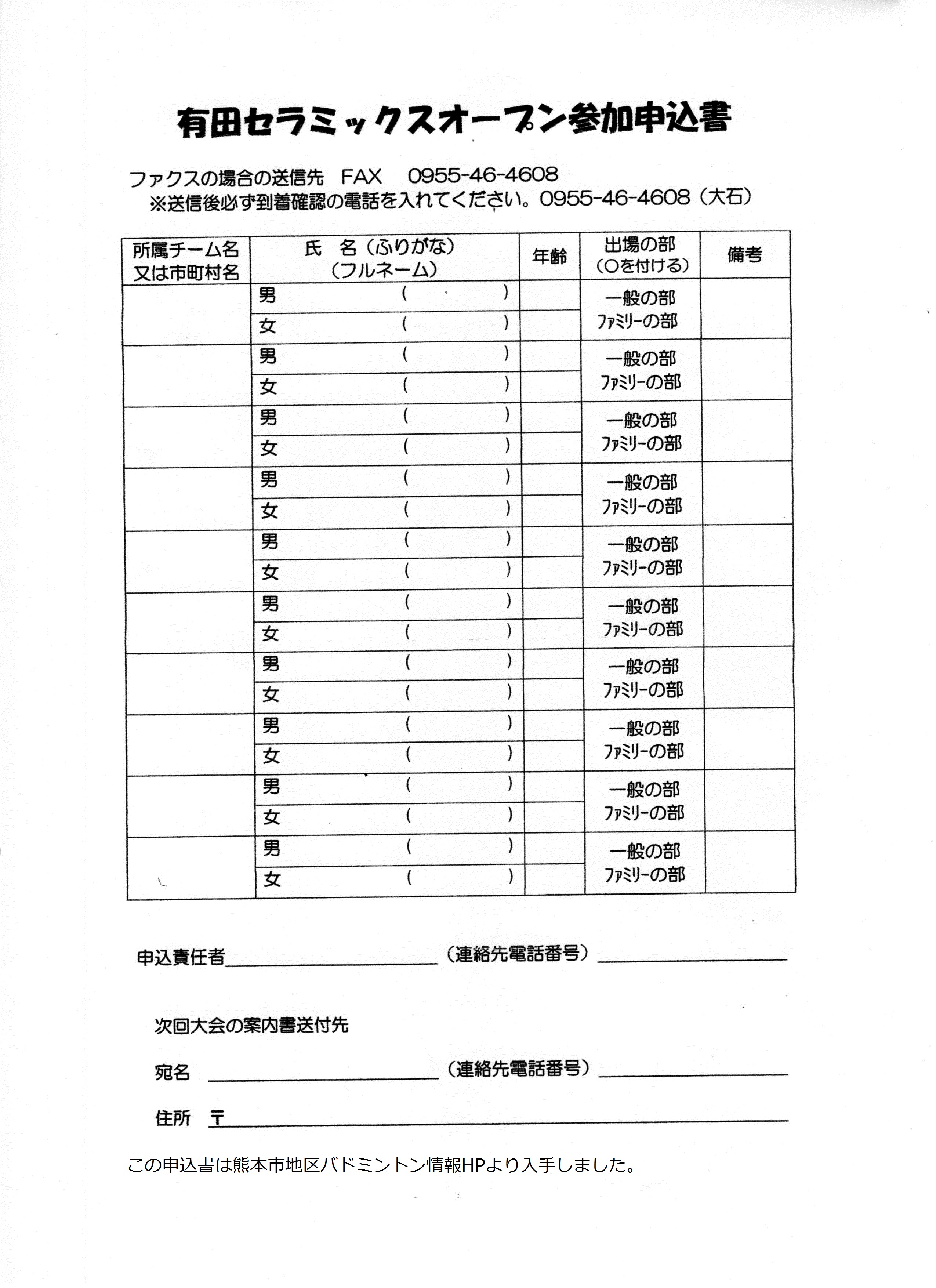 参加資格:バドミントン愛好者。地域、年齢は問わない。必ず男女ペア。