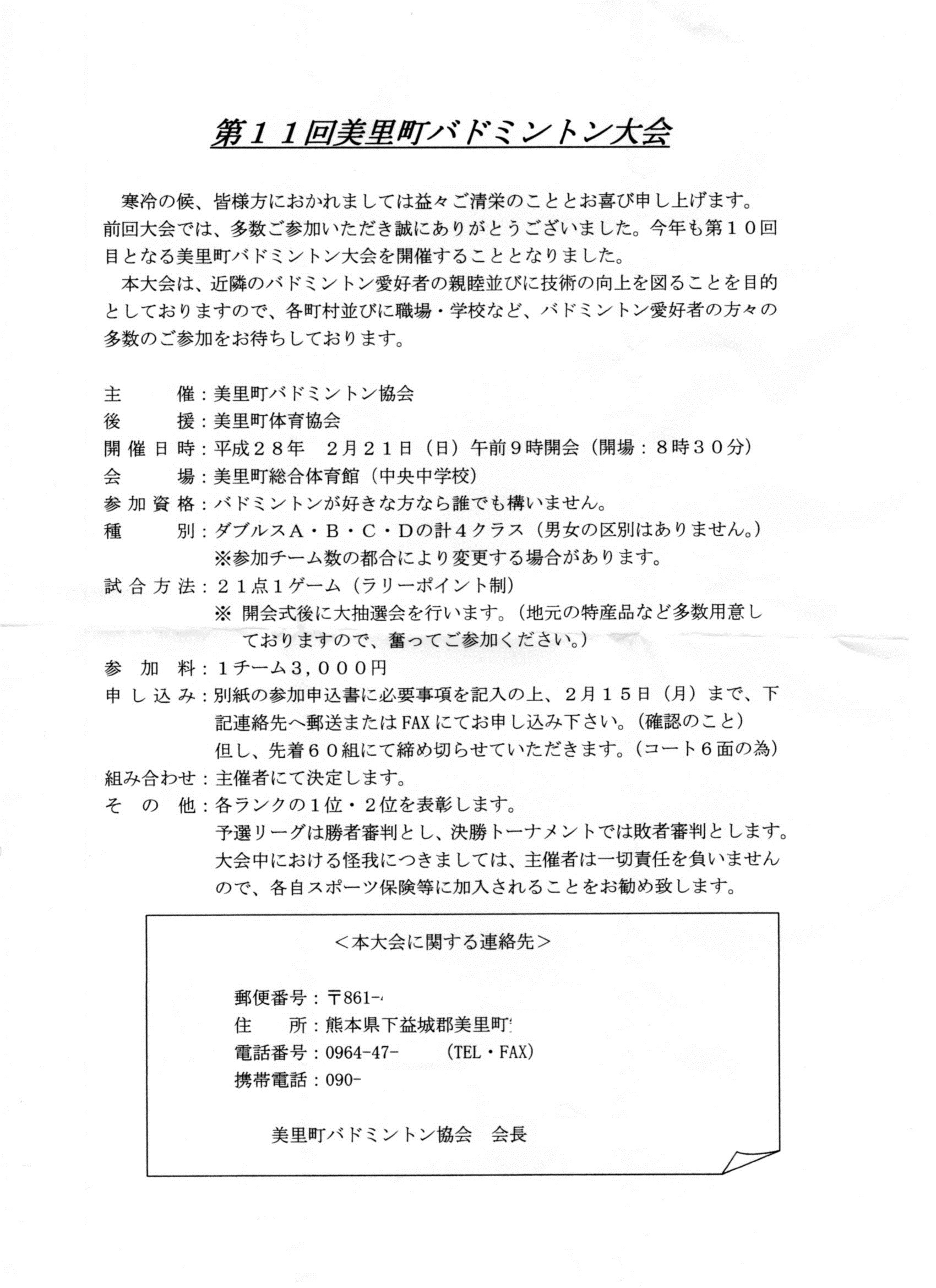その他:大会中の怪我については責任負いません。各自スポーツ保険等に加入をお勧めします。