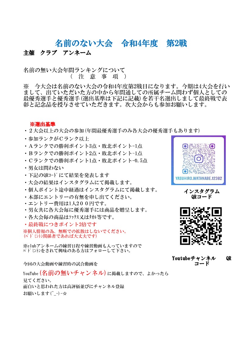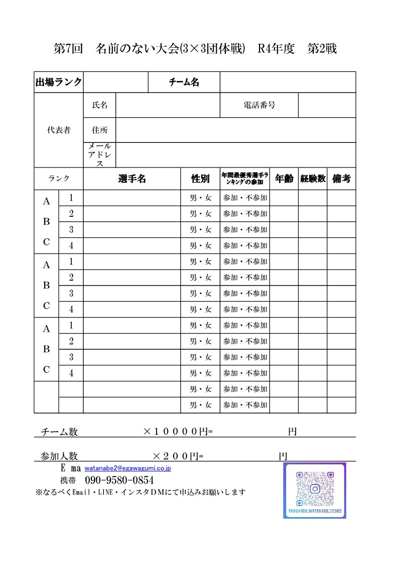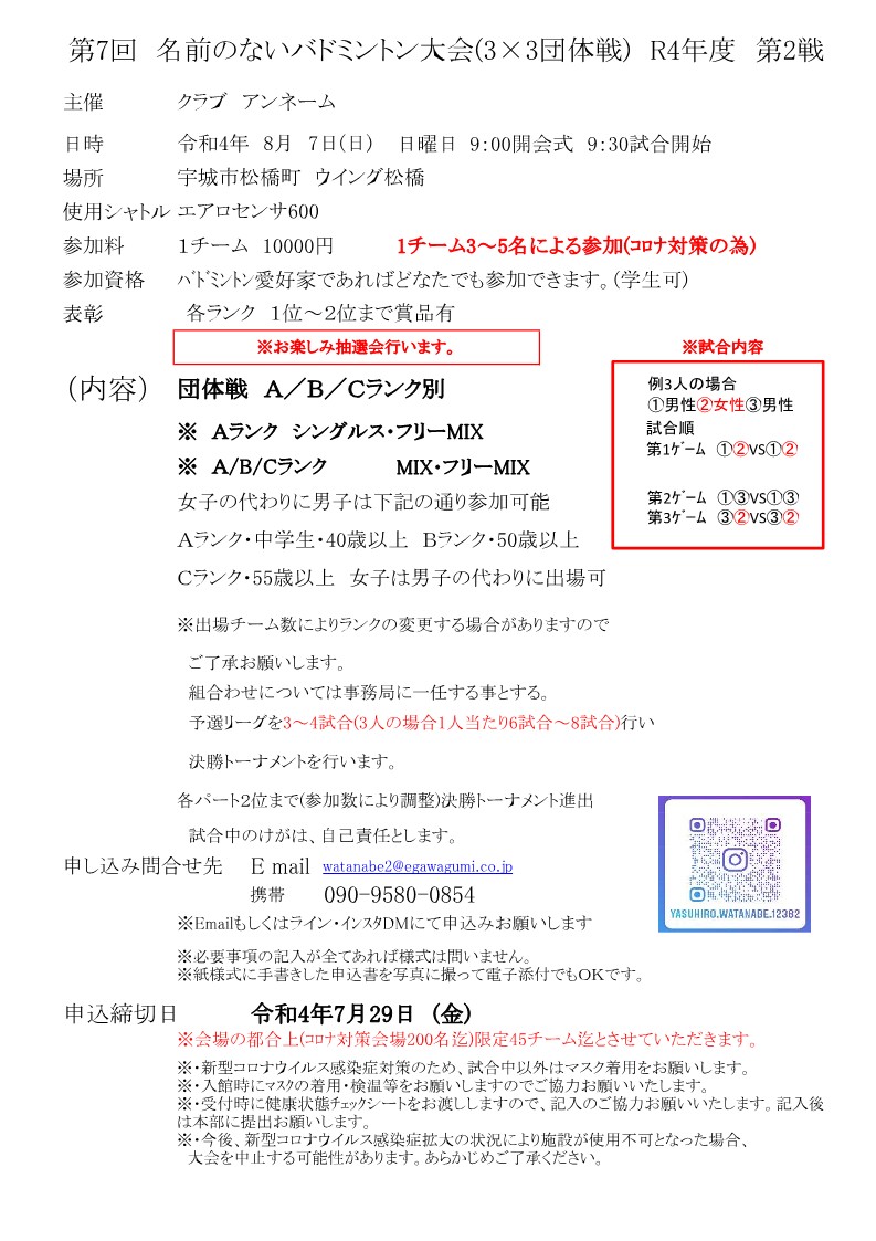 第7回 名前のないバドミントン大会(3×3団体戦) R4年度 第2戦