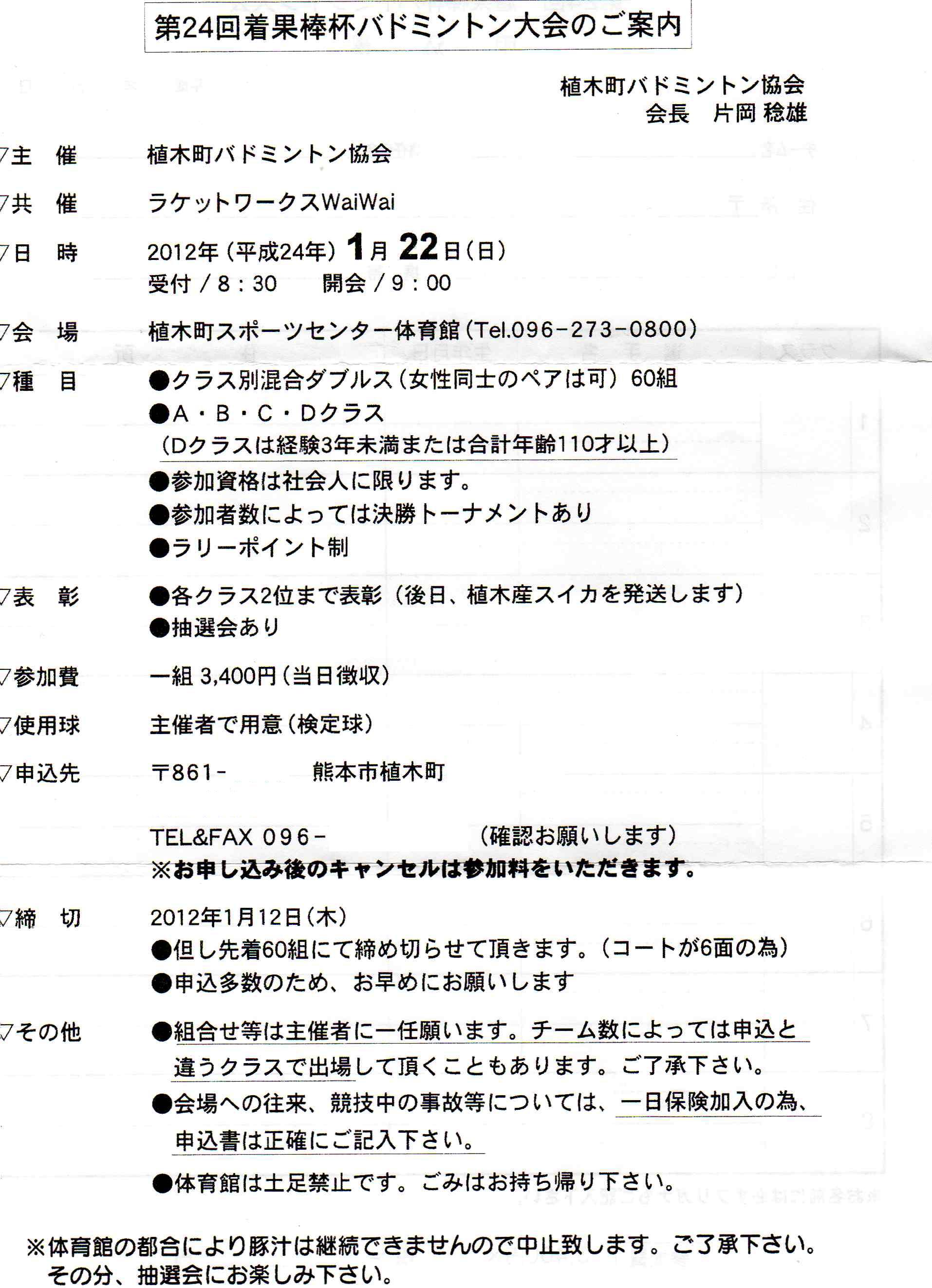 締め切り:平成24年1月12日(木)先着60組で締め切り